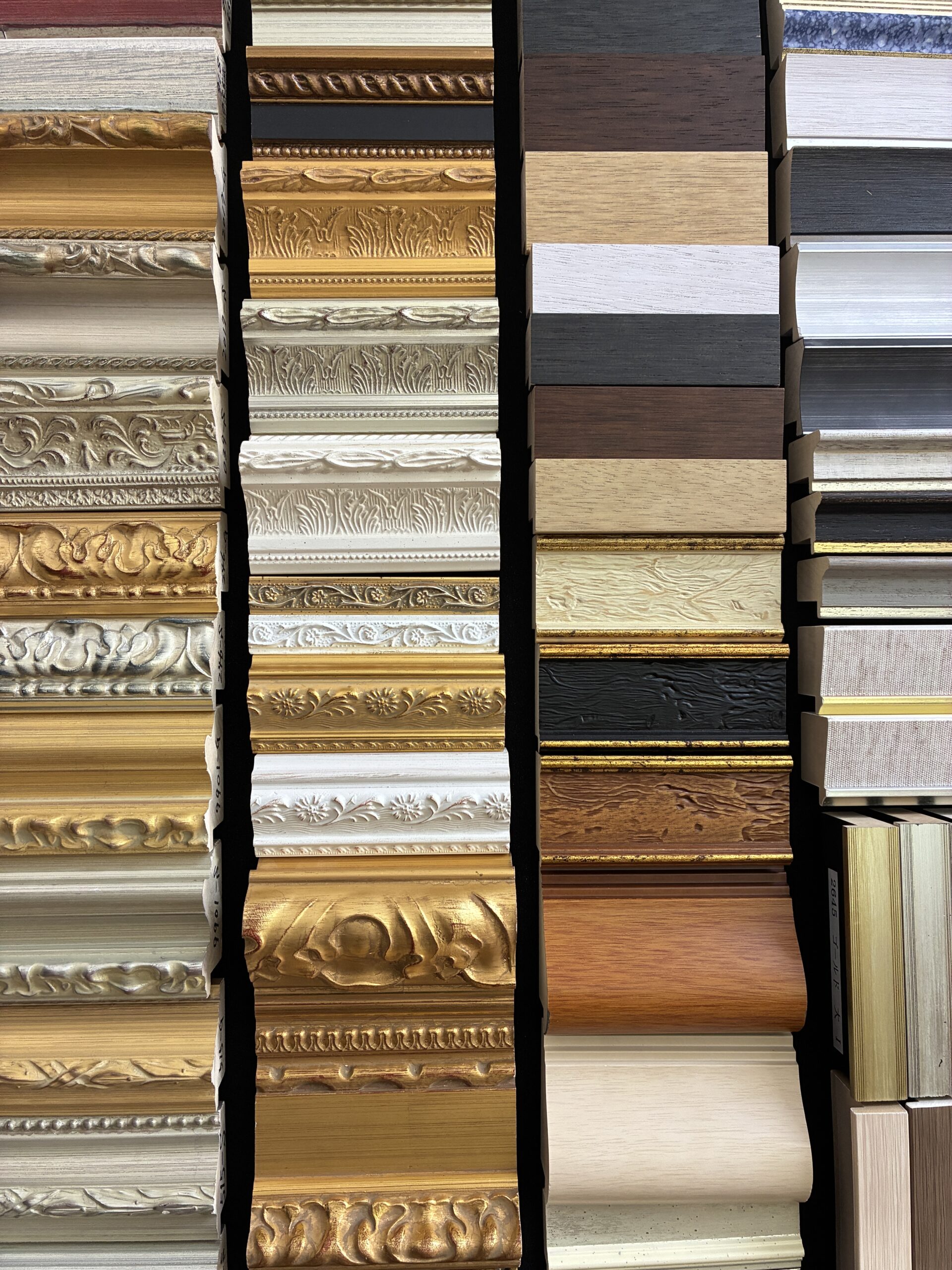 既製品の額縁取り扱いはもちろん、オーダーメイドで作品にあった大きさに額装する事も可能です。